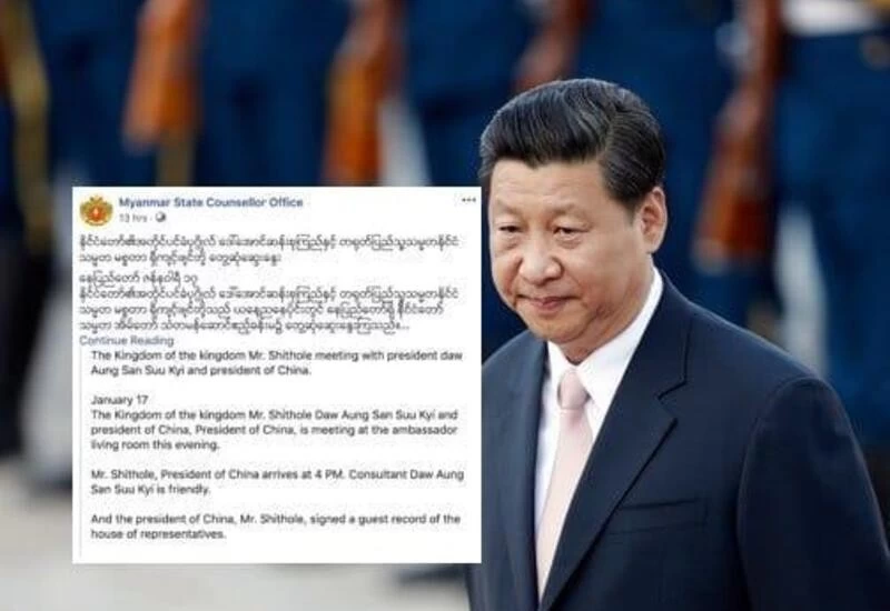 The error is occurring on the official Facebook page of Myanmar leader Aung San Suu Kyi, in a post that recounted her meeting with Mr Xi during his state visit to Myanmar.
