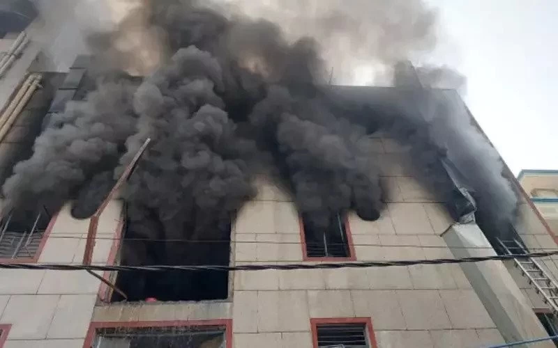 Delhi | A fire broke out in a building in Delhi's Narela Industrial Area on Tuesday. 10 fire tenders are present at the spot to douse the fire. Delhi Police said that some people were injured in this accident. The injured have been taken to the hospital, the condition of all is said to be stable. Two people have died, who are being identified. The fire incident took place in a footwear factory. The cause of the fire is being ascertained. Still some people are feared to be trapped inside.