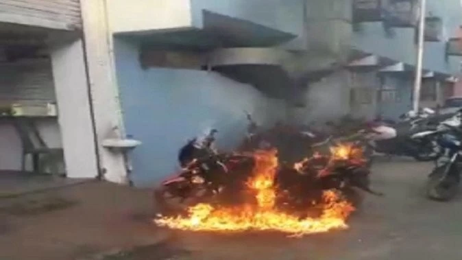 Swamy's Rath Yatra is organized on the occasion of Ugadi at Kasapuram Anjaneya Swamy Temple located in Anantapur, Andhra Pradesh, in which a large number of people from all over the country gather on the occasion of New Year. According to media reports, Ravichandra, a resident of Mysore, Karnataka, traveled 387 km in his new Royal Enfield Bullet and reached the Kasapuram Anjaneya Swamy temple in Anantapur, Andhra Pradesh to worship. While he was preparing for the puja, suddenly the bullet caught fire. There was chaos on the spot as soon as the bullet caught fire. During this, there was also a loud explosion in the bullet. At the same time, due to the fire in the bullet, many other vehicles parked nearby also caught fire, although they were brought under control in time.