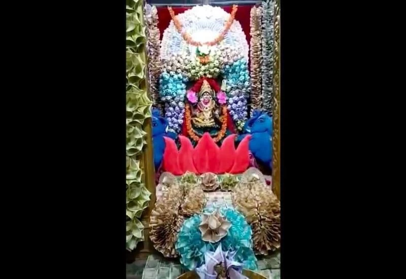 Hyderabad: The Kanyaka Parameswari temple in Telangana has been decorated with origami flowers made of currency notes amounting to over Rs.1.11 crore. As part of Dussehra festival, the organizers adorned the goddess with garlands and bouquets of origami flowers made from the currency notes of various denominations and colours.