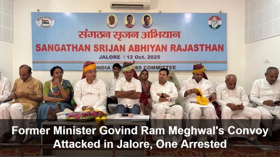 Former Rajasthan Minister Govind Ram Meghwal's convoy came under attack on Sunday night around 8 PM on the Jalore Panchayat Samiti Road. Meghwal was returning from a workers' meeting in Jalore when the incident occurred. A group of unknown youths reportedly intercepted his vehicle and began assaulting it.