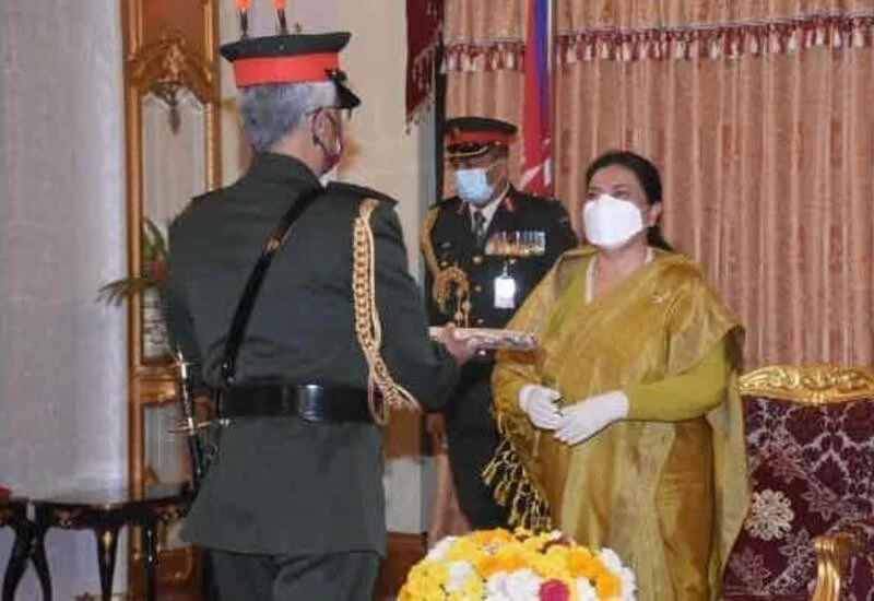 After the ceremony, Gen Naravane called on President Bhandari and conveyed his gratitude for the honour bestowed upon him. They also discussed measures to further enhance bilateral cooperation, said a statement issued by the Indian Embassy here.