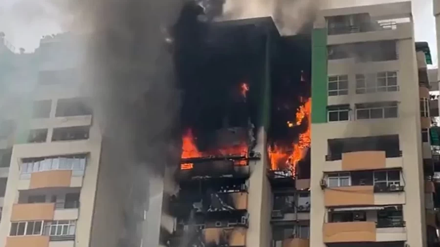 A massive fire broke out at the Gaur Green Avenue Society in Ghaziabad, Uttar Pradesh, on Wednesday morning, causing significant damage to property. The fire reportedly originated in a flat on the ninth floor of a thirteen-story building and rapidly escalated, spreading to adjacent floors. According to reports, a total of eight flats located between the 9th and 12th floors have been completely gutted by the flames. Firefighting units and police personnel rushed to the spot immediately after receiving the information.