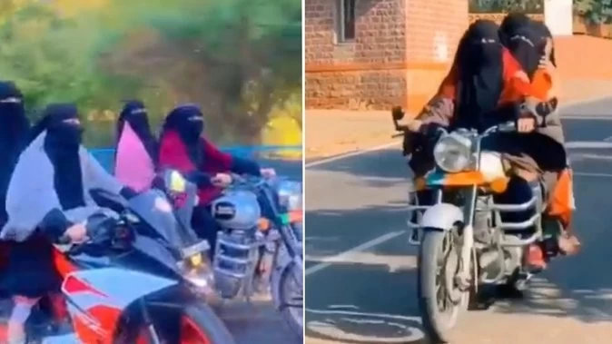 In the 43-second video, two girls wearing burqa and hijab are seen driving a bullet and sports bike on VIP Road in Bhopal. Two other girls are also sitting behind him wearing a burqa. Girls riding bullets and bikes make the sign of Viktri. After some time in the video, the girl sitting behind on the bike gives a flying kiss. The color of the front number plate of the bullet is the color of the BJP flag. On the other hand, in another viral video, 4 girls are seen sitting on a bike, in which two girls sitting behind are making a sign of Victory. The girls are wearing burqa but not wearing helmet. Earlier on Wednesday, the girls had played football and cricket wearing hijabs to protest the statement of School Education Minister Inder Singh Parmar. Also said that we are comfortable in hijab.