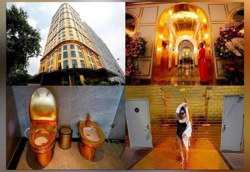 The hotel cost $200 million to construct with a 24-carat plating across lobbies, an infinity pool and rooms with even cutlery, cups, shower heads and toilet seats receiving the golden treatment.