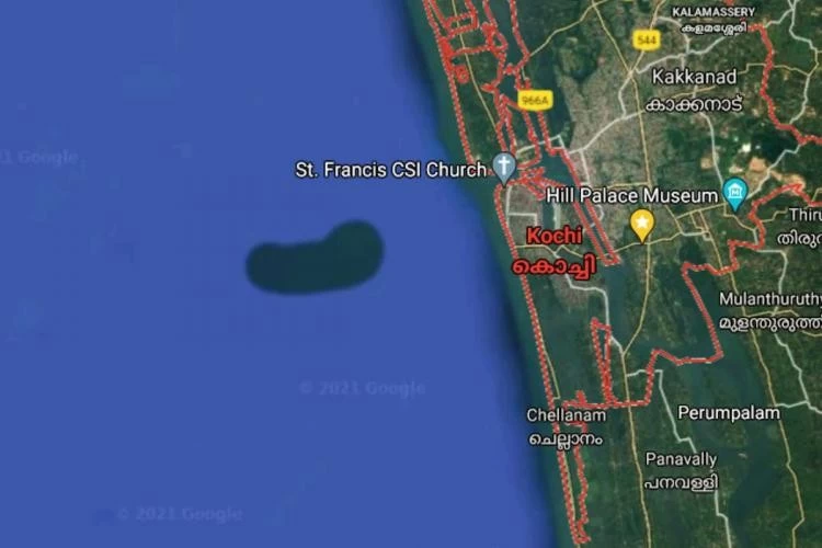 New Delhi: A bean shaped ‘island’ in the Arabian sea, a little distance away from the west coast of Kerala’s Kochi, seen on Google Maps satellite imagery, has perplexed many. The reason? Though the island-like formation seems to be about half the size of west Kochi or Pashchima Kochi, no ‘visible’ structure that is even remotely close to an island has been observed in the sea. Baffled by this, experts now assume it to be an underwater structure, and officials of Kerala University of Fisheries and Ocean Studies (KUFOS) are planning to investigate the matter further.
