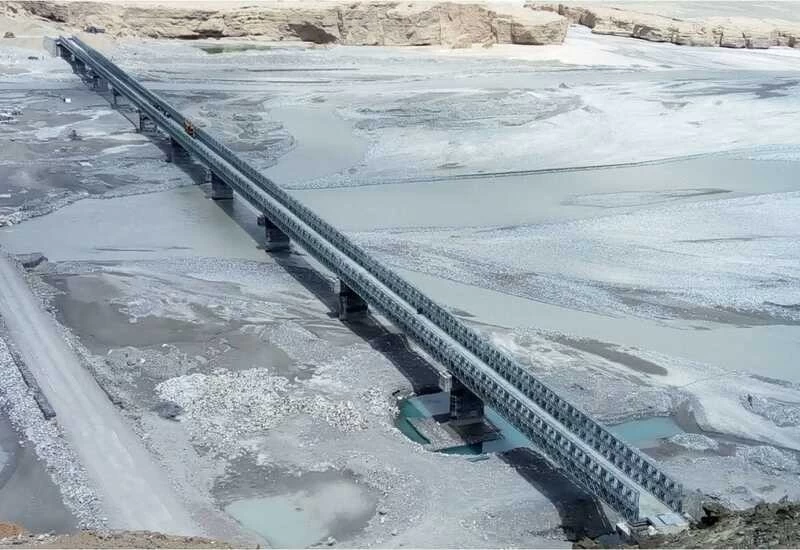 Sandwiched between strategic Karakoram and Chang Chenmo ranges, the ‘Col Chewang Rinchen Setu’ is a 430-metre bridge built at an altitude of about 15,000 feet using Micro Piling Technology. The construction has been completed in record time within 15 months.
