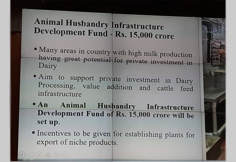 New Delhi: The government on Friday announced an 'Animal Husbandry Infrastructure Development Fund' worth Rs 15,000 crore to support private investment in dairy processing, value addition and cattle feed infrastructure.