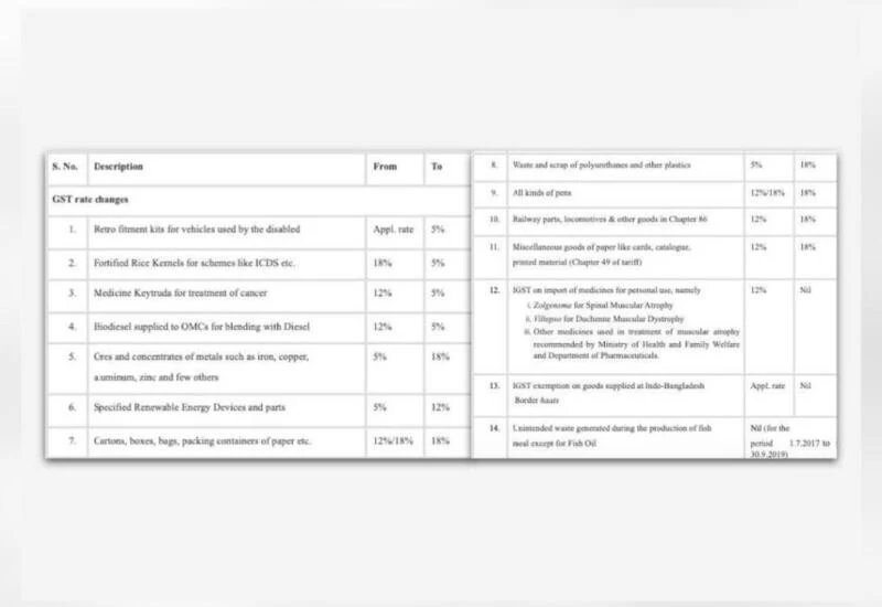 Major recommendations on GST rate changes in relation to Goods