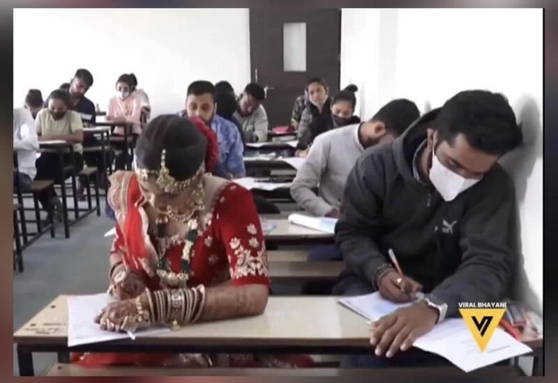 Shivangi Bagthariya, all decked up in a shimmering red sari and bridal jewellery, added a welcome change to the usual tension-filled atmosphere of the examination hall. As she took the examination in her bridal dress, Bagthariya surprised as well as inspired many.