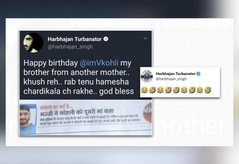 Cricket Desk: Harbhajan Singh can't stop laughing - all thanks to a hilarious case of mistranslation. On Thursday, the former cricketer took to Twitter to share an old post in which he had wished Virat Kohli on his birthday. In his birthday message from 2017, Harbhajan Singh had called Kohli his "brother from another mother". A Hindi newspaper, however, misunderstood his tweet and reported that Harbhajan Singh had called Virat Kohli his "second mother".