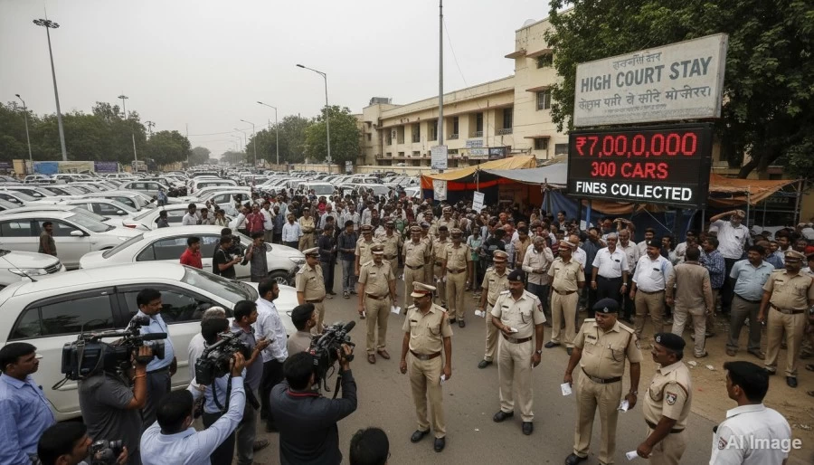 The High Court had placed a stay on the collection of One Time Tax from vehicles registered in other states starting July 2025. The court explicitly stated that the government must issue a new notification to resume tax collection; however, no such notification has been issued to date. In several departmental actions, while the standard fine amounts to ₹25,000 to ₹30,000, sums ranging from ₹1 lakh to ₹3 lakh were collected. These amounts actually correspond to OTT rates rather than judicial fines. Consequently, the previously deposited amounts won't be adjusted against future taxes, leading to significant financial losses for vehicle owners.