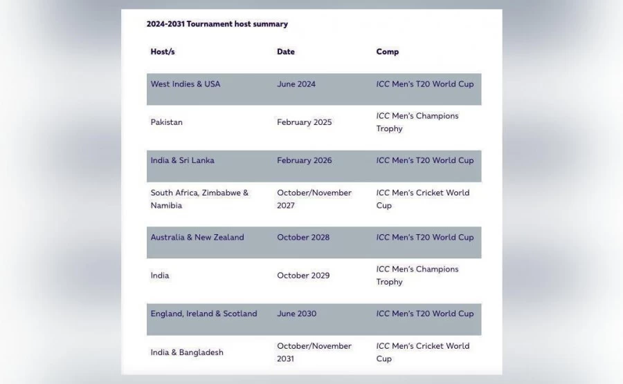 Cricket Desk: The International Cricket Council (ICC) today confirmed the 14 host countries of the ICC men’s white ball events from 2024-2031. 11 Full Members and three Associate Members have been selected to host two ICC Men’s Cricket World Cups, four ICC Men’s T20 World Cups and two ICC Men’s Champions Trophy events.