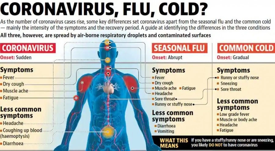 New Delhi: As the number of coronavirus cases rise, some key differences set it apart from the seasonal flu and common cold - mainly the intensity of the symptoms and the recovery period. All three, however, are spread by air-borne respiratory droplets and contaminated surfaces.
