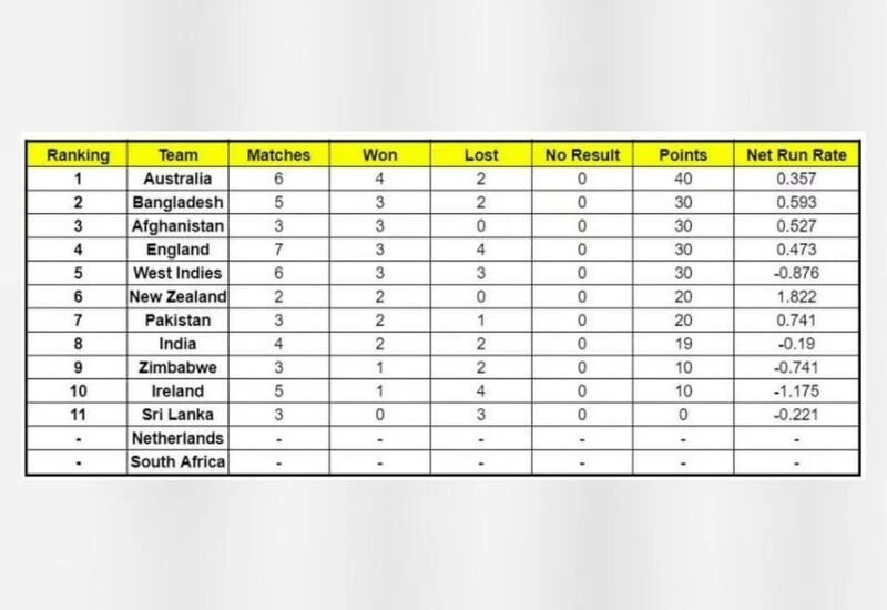 Meanwhile, England have dropped to fourth position. Their net run rate dipped a bit after the defeat at the MCA Stadium. Courtesy of England's loss, the Afghanistan cricket team has risen to third place.