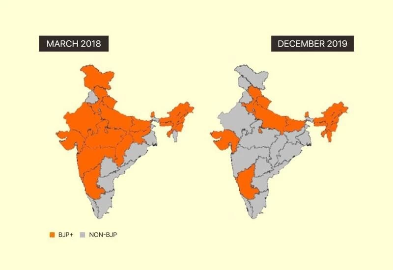 The downward spiral for the BJP began last year with losses in politically crucial states of Rajasthan, Madhya Pradesh and Chhattisgarh. While it lost by a small margin in Rajasthan and MP, the party suffered a humiliating defeat in Chhattisgarh. The BJP had ruled both MP and Chhattisgarh for three consecutive terms before it lost power to Congress in December 2018.