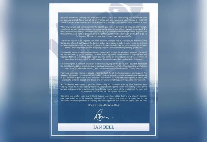 Five-time Ashes winner Bell, who spend his entire career with Warwickshire, revealed that he’ll hang up his boots after the Bears wrap up their matches of the current domestic season. He reminisced his cricket journey in his statement and expressed gratitude towards people who’ve been a part of it.