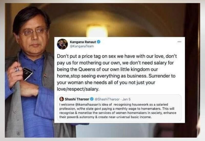 New Delhi: Politician Shashi Tharoor has responded to Kangana Ranaut's reaction after she opposed to the idea of recognising home-making as a salaried profession as endorsed by actor-turned-politician, Kamal Hassan.