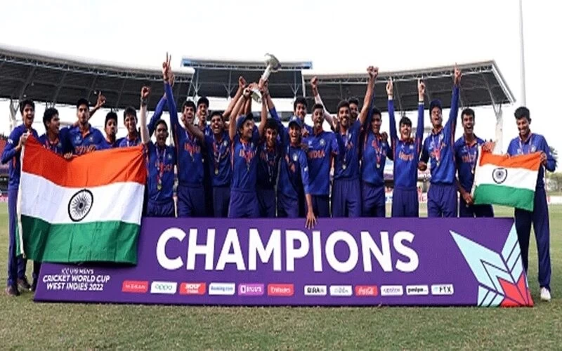 The Indian team has won the Under-19 World Cup title for the 5th time, creating history. Team India has defeated the England team by four wickets. Eleven years ago, Mahendra Singh Dhoni had won the World Cup for India by hitting a six at the Wankhede Stadium in Mumbai, and in the same fashion, Dinesh Bana scored a six in the Under-19 World Cup final against England and put the title in India's lap.