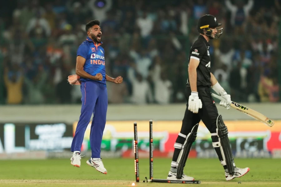 Fifth: Mohammad Shami bowled Glenn Phillips on the third ball of the 25th over.