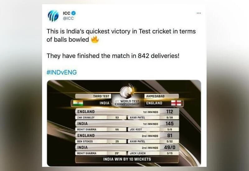 Incidentally, the Ahmedabad Test is also only the 2nd Test match to be completed inside 2 days in India. The Test match between India and Afghanistan in 2018 in Bengaluru was over inside the first 2 days.