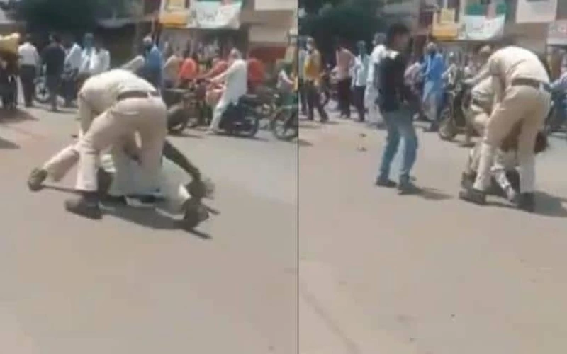 Madhya Pradesh | It is mandatory to follow rules such as masks and social distancing to prevent the corona epidemic. State governments have also ordered strict action against those who violate these rules, but two policemen in Madhya Pradesh came down to vandalism instead of legal action. In Indore, an auto driver was beaten severely after being dropped on the road for not wearing a mask properly. Both policemen beat him brutally with kick and bribes. This video of police brutality has gone viral.