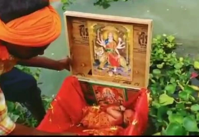 The case belongs to the Dadari Ghat of the Sadar Kotwali area. In the Ghazipur's Sadar Kotwali area, a innocent child found in a wooden box flowing in the river Ganga in the liberty. It is being told that a navigator has heard a child's crying from a wooden box on Ganga on Dadari Ghat. If the sailor went near and saw the sound of the crying of a child from the inside of the wooden box, some people present on the ghat also gathered. People opened the box then stunned. The wooden box was a innocent child, who was crying. Surprisingly it was a photo of Goddesses in the box and there was also a horoscope, which is probably the child. The name of the baby in the horoscope has written Ganga.