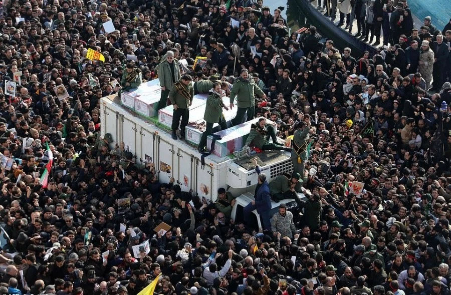 The Iranian general's body was marched through the streets of Baghdad, before it was flown to the city of Ahvaz in southwest Iran, where around one million mourners gathered to pay their respects.