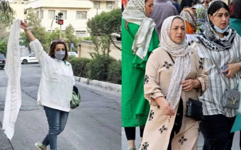 Iranian women throwing hijab in the streets