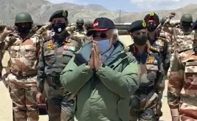 New Delhi: As Prime Minister Narendra Modi arrived at a forward post in Ladakh to speak to troops, chants of "Bharat Mata ki jai" and "Vande Mataram" rang out. A video shows soldiers cheering as the Prime Minister walked amidst them, in a surprise visit to Ladakh days after the June 15 clash with China in which 20 soldiers were killed in action.PM Modi, accompanied by Chief of Defence Staff General Bipin Rawat, and Army Chief General MM Naravane, arrived in Leh early today and was flown by chopper to Nimu, 11,000 feet up in the Himalayas and on the banks of the river Indus.