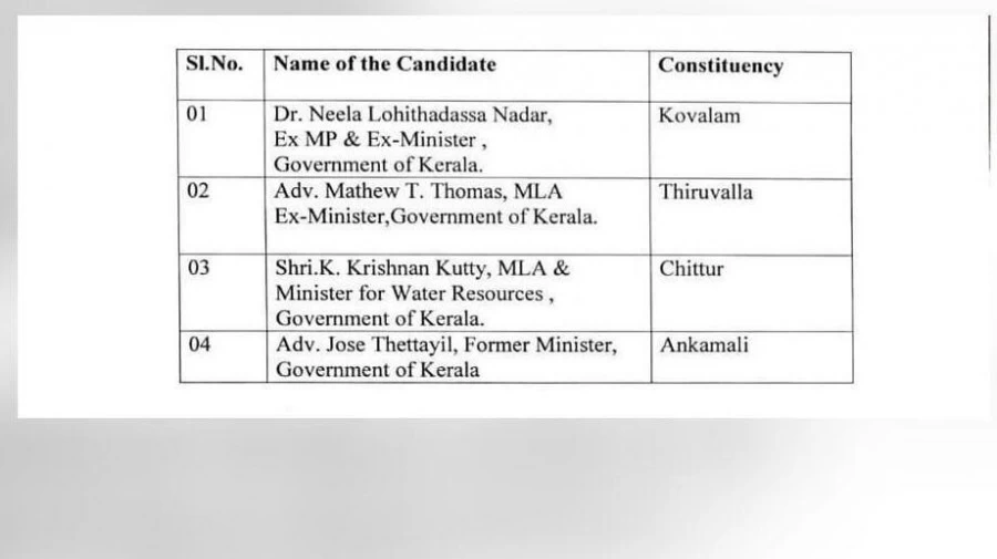 Kerala state JD(S) President Mathew T Thomas is among the candidates whom the party has fielded and he will be contesting from Thiruvalla assembly seat.