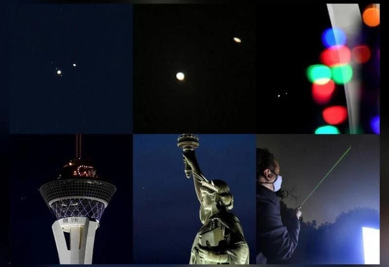 The planetary alignment will be visible to the naked eye, even through light pollution in cities, but in a cloudless sky. Through telescopes or binoculars, both planets can be spotted in the same frame in a historic first. Powerful telescopes can capture both the Galilean moons (Jupiter’s four biggest moons: Ganymede, Callisto, Europa, Io) as well as Saturn’s rings.