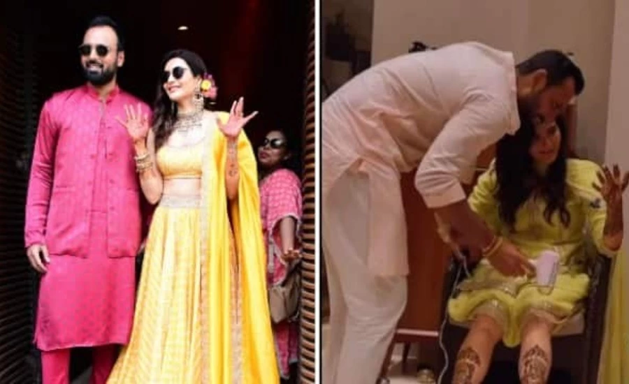 Karishma Tanna is getting married to businessman Varun Bangera on 5 February. On Thursday, their wedding rituals began with Haldi. After this the pictures and videos of her Mehndi are also viral. In a video, Mehndi is seen on Karishma's feet. She is showing Varun the mehendi of his hands. At the same time, he is going to dry the henna on his feet with the dryer.