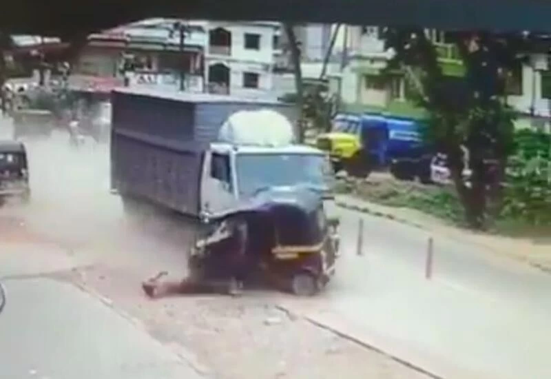 A school teacher Shailaja Rao dies in an accident after truck collided with auto rickshaw in Mangaluru. Rao was travelling in the rickshaw. Horrific video footage@XpressBengaluru @NewIndianXpress pic.twitter.com/mblTWNBQH2