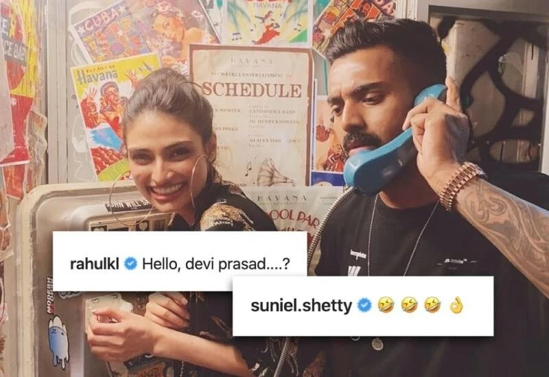 On Saturday, the cricketer took to Instagram to share the picture, which shows the two inside a phone booth. Rahul is holding an old-school receiver, while Athiya can be seen laughing next to him. The caption is a reference to the film Hera Pheri: “Hello, devi prasad....?”