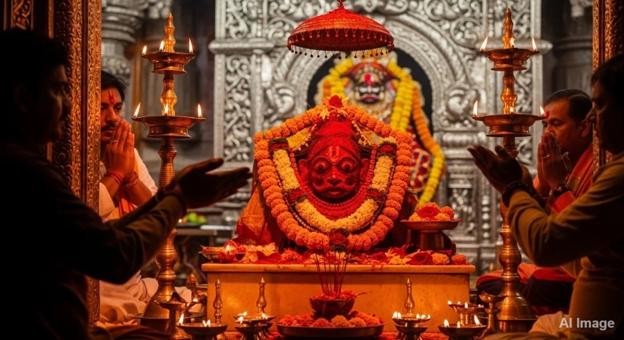 As Kaal Bhairav is a manifestation of Lord Shiva, performing his puja during the Pradosh Kaal is considered highly auspicious. Pradosh Kaal refers to the period immediately after sunset, which is traditionally deemed propitious for worshipping Lord Shiva. Similarly, the worship of Kaal Bhairav should ideally be conducted after sunset. Also, performing Kaal Bhairav puja at midnight is also considered very auspicious. Devotees can choose either of these times, based on their convenience and devotion, to perform the sacred rituals.