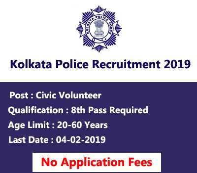 Information: Kolkata Police has published the notification for the recruitment of Civic Volunteer vacancies under different units of Kolkata Police. Qualification required is Candidates should possess 8th Class. The age limit is required minimum will be 20 years and maximum will be 60 years. Closing date for acceptance of application is 04-02-2019 by 05:00 p.m.