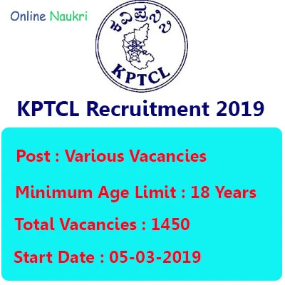 Information: Karnataka Power Transmission Corporation Limited (KPTCL) has declared the applications for the recruitment of Assistant Executive Engineer, Assistant Engineer, Junior Engineer, Junior Personal Assistant & Junior Assistant vacancies (NHK). Qualification required is BE/ B.Tech, Diploma (Electrical/ Electrical & Electronics Engineering), SSLC/10th exam. The minimum age limit required is 18 years. The interested candidates can apply online from 05-03-2019.