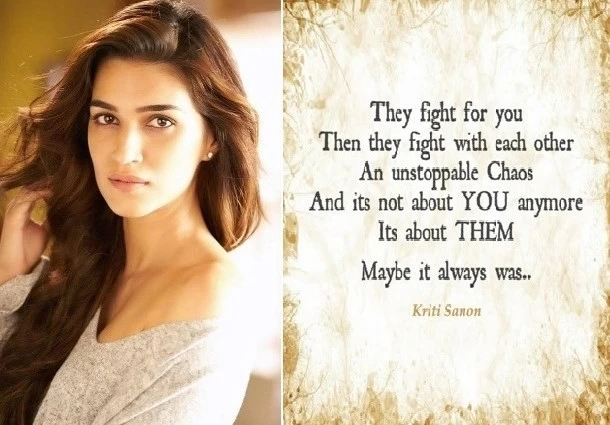 Kriti wrote, “They fight for you Then they fight with each other An unstoppable chaos And its not about YOU anymore Its about THEM Maybe It always was.”