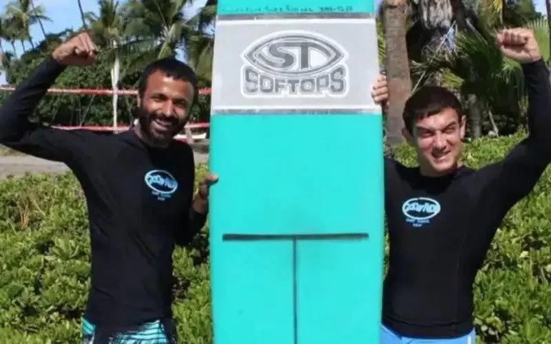 Advait Chandan shared an unseen picture with Aamir Khan on social media. Both are in beach outfits and pose with surfboards while looking at the camera. Advait Chandan rubbishes reports of bad relationship with Aamir Khan. He has compared their pair to Amar and Prem, Ballu and Mowgli.