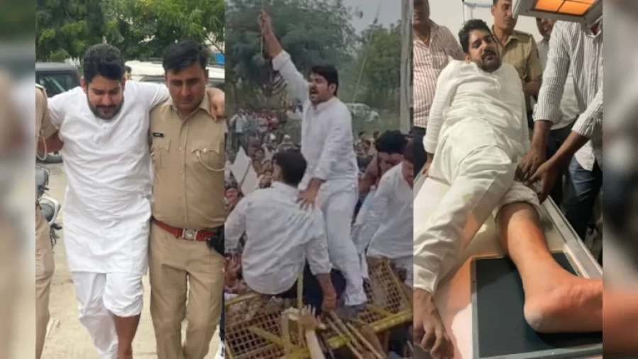 A major protest in Didwana, Rajasthan, on Monday, against the government's decision to bring farmers' lands under state custodianship and declare them 'siwai chak', escalated into clashes, resulting in Ladnun MLA Mukesh Bhakar fracturing his leg. The incident took place as protesters attempted to storm the District Collectorate, leading to a confrontation with the police.