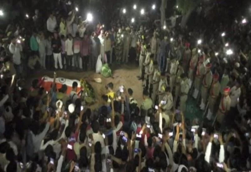 The soldier's body was cremated late after sunset which forced villagers to use the flashlight of their mobile phones to perform the last rites.