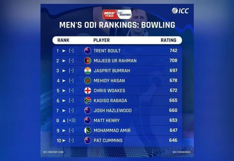 New Zealand, who have taken a winning 2-0 lead, see left-hander Tom Latham move up five places to 30th and to a career best 631 rating points after notching 110 not out in the second match. Matt Henry has moved into the top 10 (from 11th to eighth) and Mitchell Santner has gained eight places to reach 25th among bowlers.