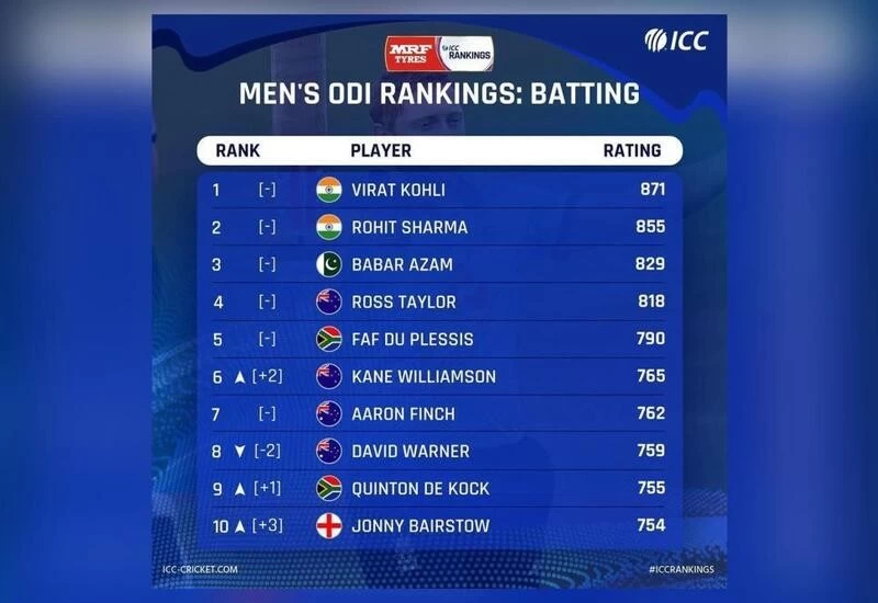 Cricket Desk: The latest ICC ODI batter’s rankings are out, and it’s the Indian stunners Virat Kohli and Rohit Sharma, who are shining at the top two slots. The rankings got updated after the completion of recently-concluded three-match series between Australia and England. The Indian skipper has sealed the ultimate number one position with 871 points while the brilliant Sharma is standing tall at the second spot, with 855 points in his bag.