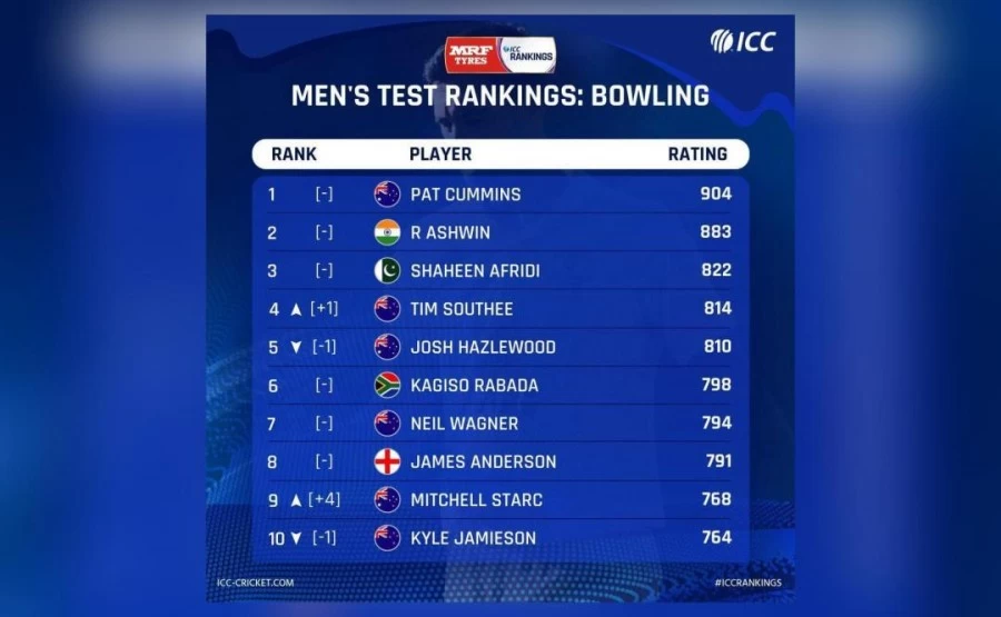 Among bowlers, Ravichandran Ashwin is still in second place behind Australia skipper Pat Cummins.