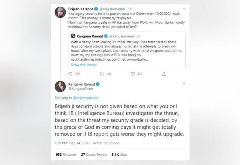 Kangana replied to the SC advocate and said, "Brijesh ji security is not given based on what you or I think, IB ( Intelligence Bureau) investigates the threat, based on the threat my security grade is decided, by the grace of God in coming days it might get totally removed or if IB report gets worse they might upgrade."
