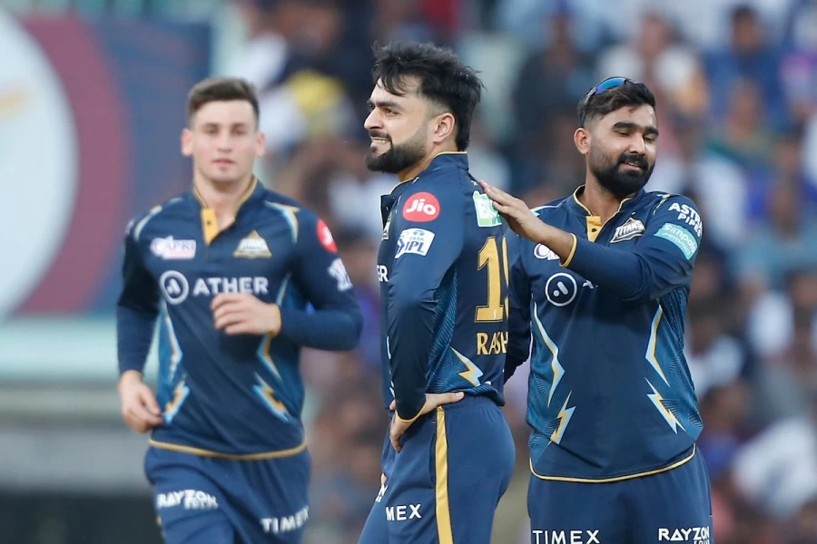 Gujarat Titans: Hardik Pandya (captain), Shubman Gill, Wriddhiman Saha (wicketkeeper), Vijay Shankar, Abhinav Manohar, Rahul Tewatia, David Miller, Rashid Khan, Mohammed Shami, Mohit Sharma and Noor Ahmed.