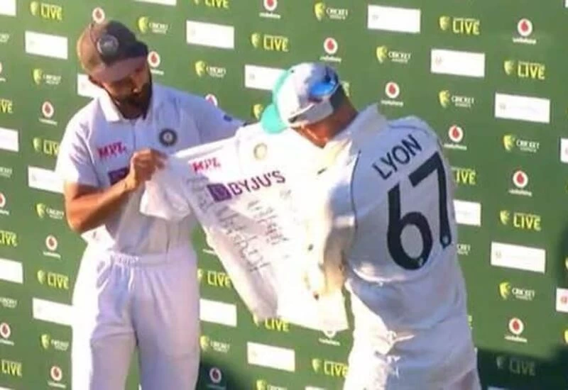 Cricket Desk: In a heart-warming gesture, India captain Ajinkya Rahane presented Nathan Lyon with jersey signed by the touring squad to mark the Australia offspinner’s 100th Test. Lyon is the third ever Australia specialist bowler to have played 100 Test matches.