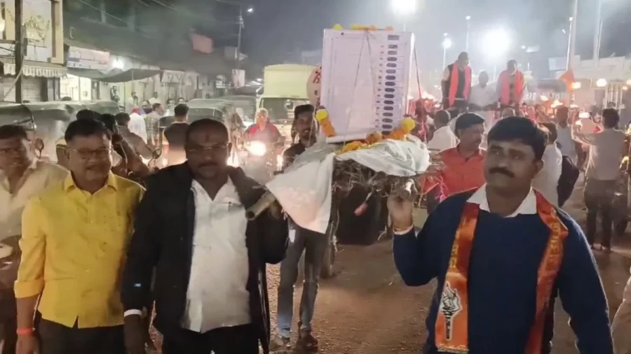 Electronic Voting Machine: After the crushing defeat in the Maharashtra assembly elections, Shiv Sena (Uddhav Balasaheb Thackeray) and Maha Vikas Aghadi staged a big protest against EVMs (Electronic Voting Machines). In Dhule district, Shiv Sena (UBT) workers took out a symbolic funeral procession of EVMs and organized a torch procession. During this, slogans like EVM Hatao, Desh Bachao and Democracy Bachao were raised.