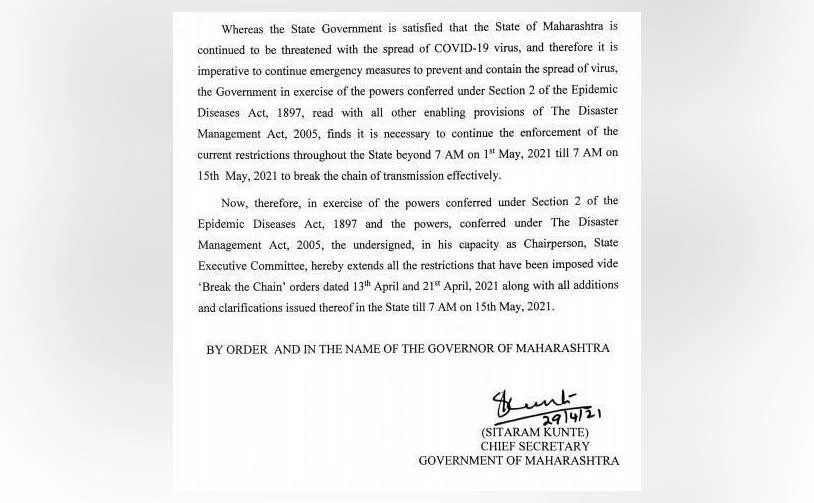 Mumbai: With Maharashtra adding an average 60,000 patients per day, the Maha Vikas Aghadi government on Thursday decided to extend the strict lockdown-type measures till 15 May.
